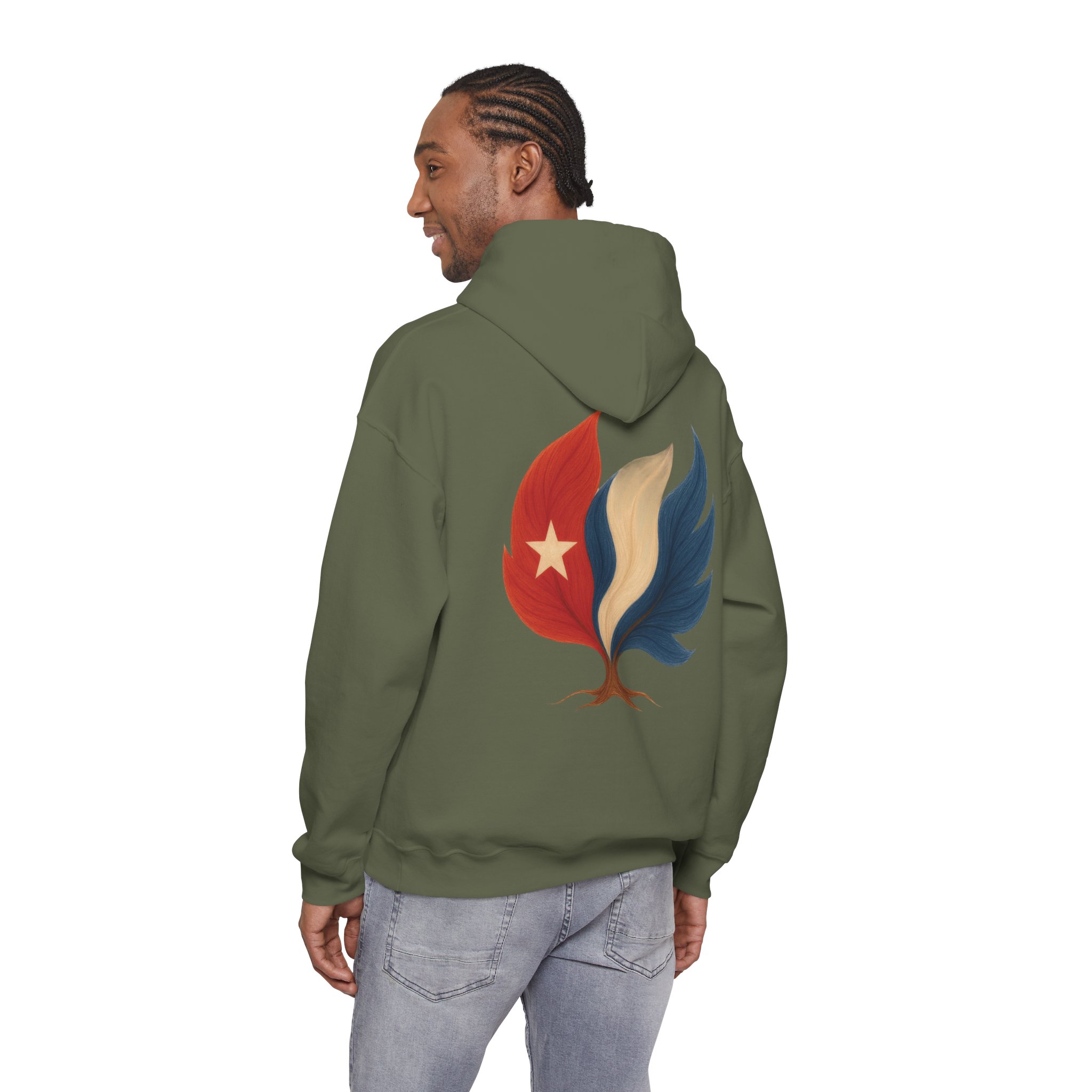 Doux, ample et d’une audace discrète, ce sweat-shirt à capuche vous enveloppe de chaleur tout en arborant un emblème inspiré par la nature de vos origines. Le motif mêle un arbre aux couleurs de Cuba, évoquant la résilience, le renouveau et une énergie ancrée. Il procure la sensation d’une promenade matinale rafraîchissante au milieu des cèdres et des braises : calme, sérénité et une confiance tranquille. La poche kangourou et la capuche doublée ajoutent une touche pratique au quotidien. Portez-le pour des week-ends de détente, des soirées autour d’un feu de camp ou simplement pour affirmer votre lien subtil avec la nature et vos racines.