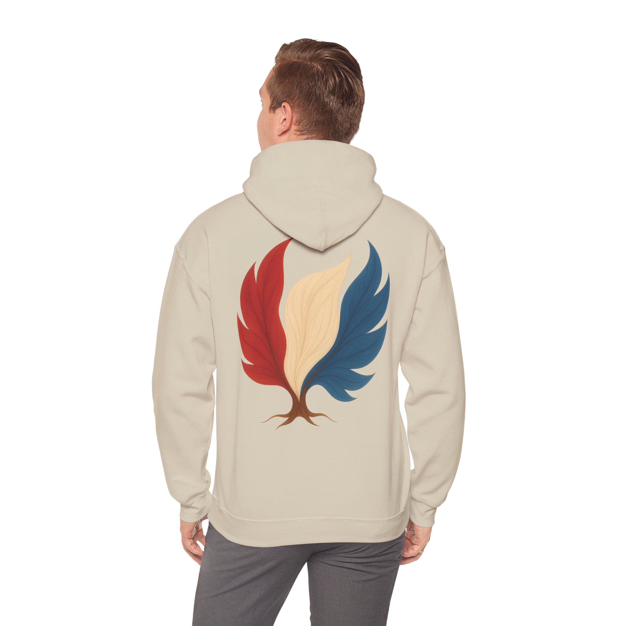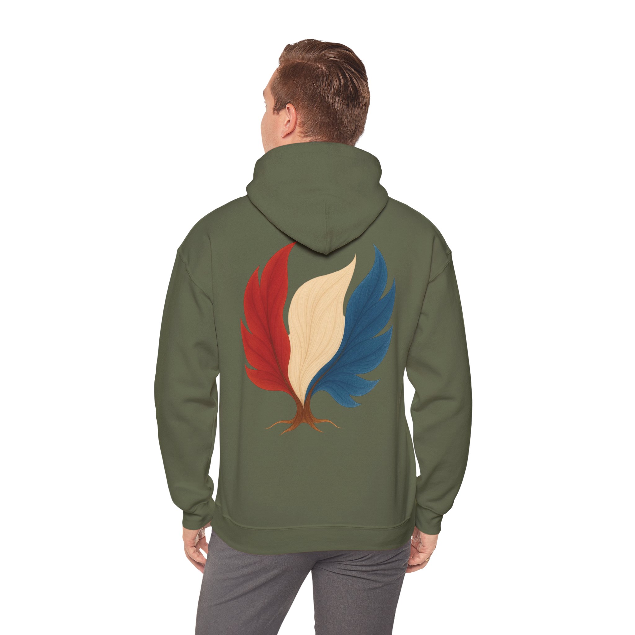 Doux, ample et d’une audace discrète, ce sweat-shirt à capuche vous enveloppe de chaleur tout en arborant un emblème inspiré par la nature de vos origines. Le motif mêle un arbre aux couleurs des Pays-Bas, évoquant la résilience, le renouveau et une énergie ancrée. Il procure la sensation d’une promenade matinale rafraîchissante au milieu des cèdres et des braises : calme, sérénité et une confiance tranquille. La poche kangourou et la capuche doublée ajoutent une touche pratique au quotidien. Portez-le pour des week-ends de détente, des soirées autour d’un feu de camp ou simplement pour affirmer votre lien subtil avec la nature et vos racines.