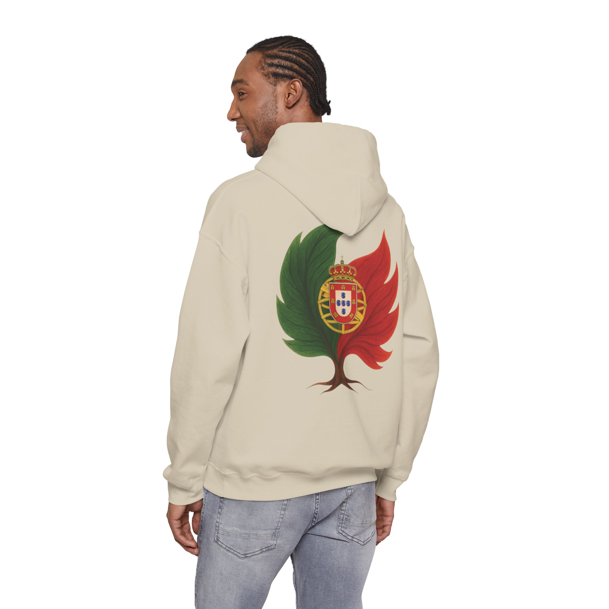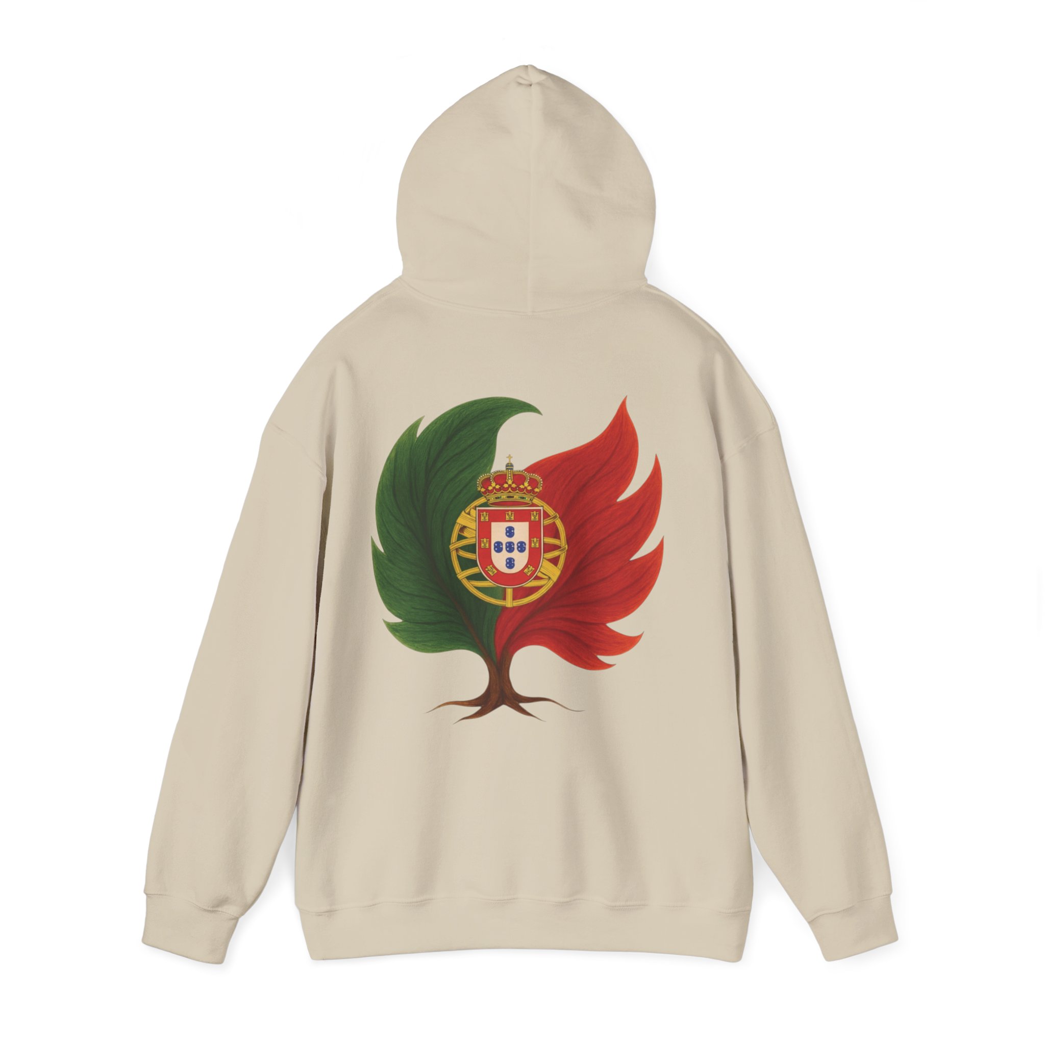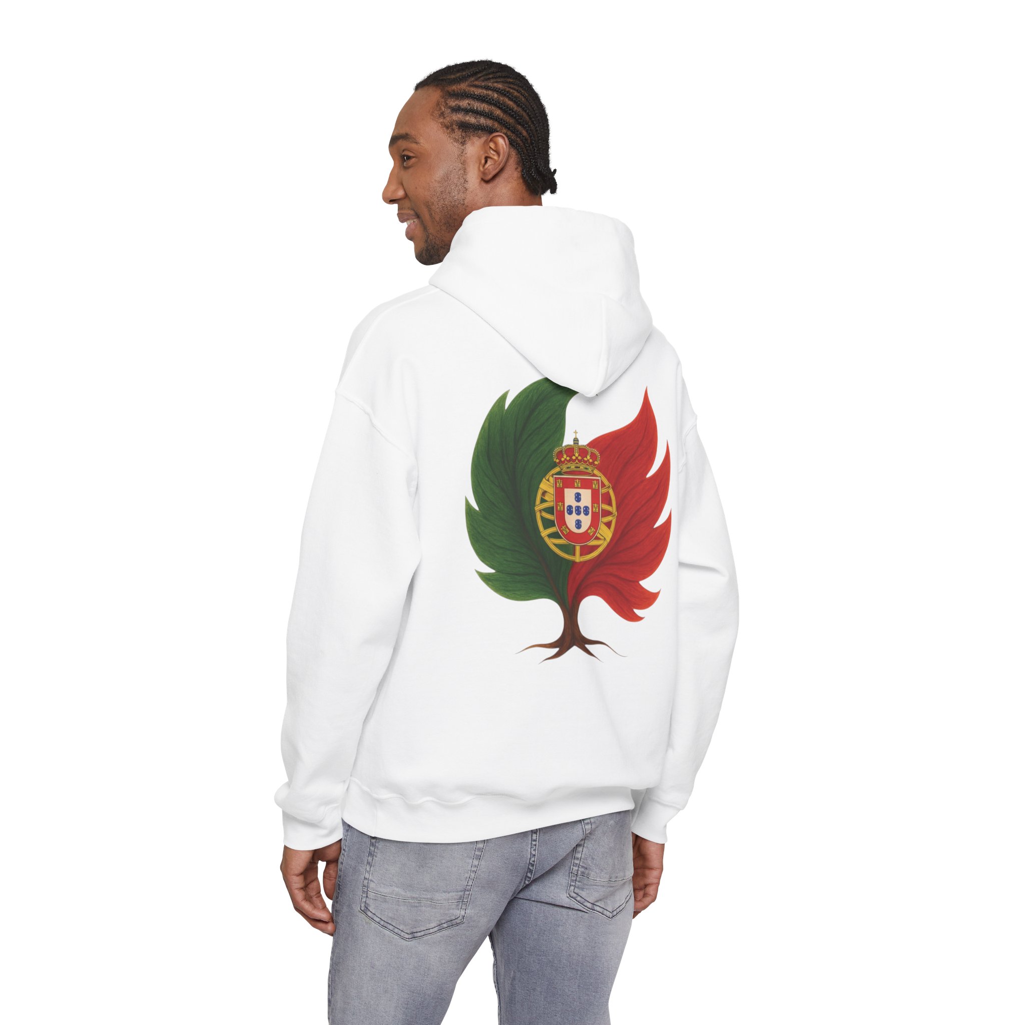 Doux, ample et d’une audace discrète, ce sweat-shirt à capuche vous enveloppe de chaleur tout en arborant un emblème inspiré par la nature de vos origines. Le motif mêle un arbre et les couleurs du Portugal, évoquant la résilience, le renouveau et une énergie ancrée. Il procure la sensation d’une promenade matinale rafraîchissante au milieu des cèdres et des braises : calme, sérénité et une confiance tranquille. La poche kangourou et la capuche doublée ajoutent une touche pratique au quotidien. Portez-le pour des week-ends de détente, des soirées autour d’un feu de camp ou simplement pour affirmer votre lien subtil avec la nature et vos racines.