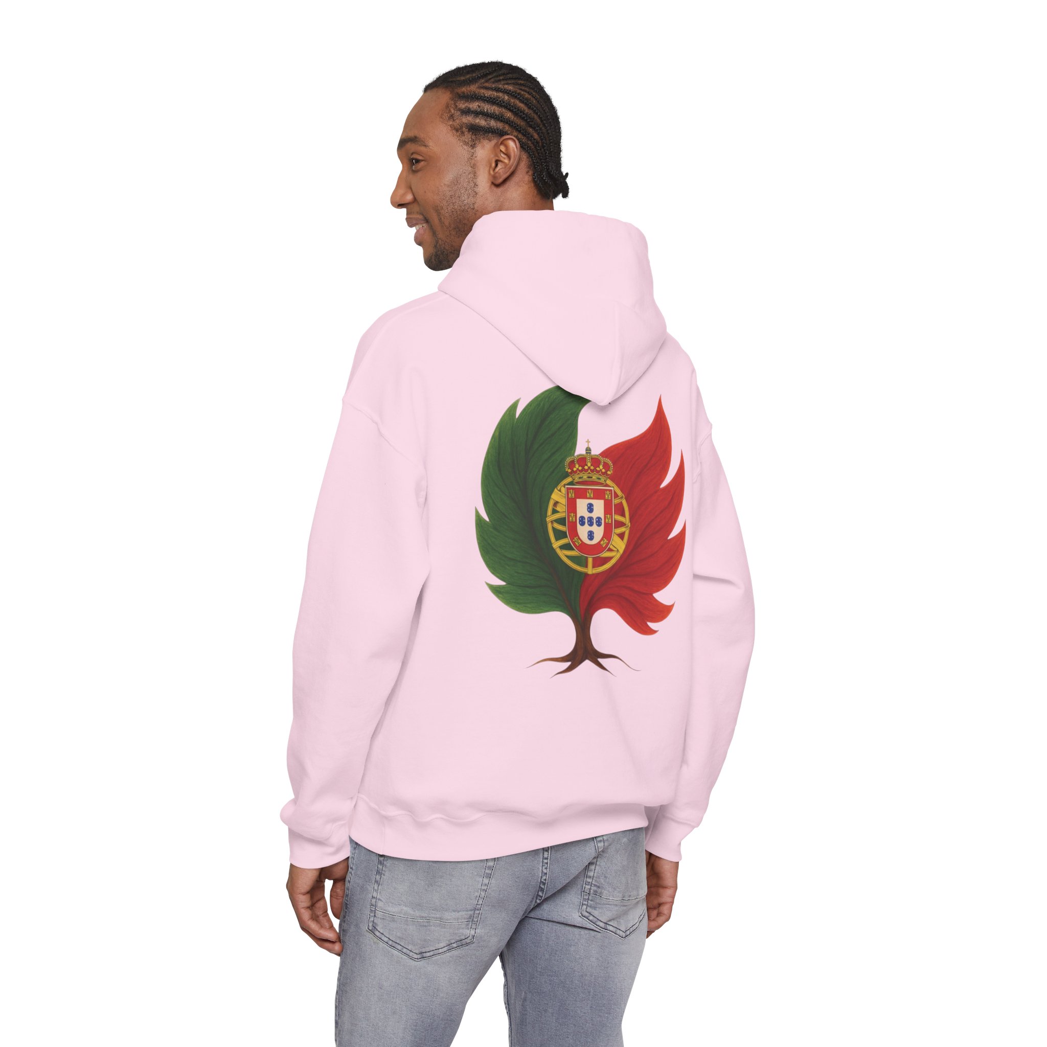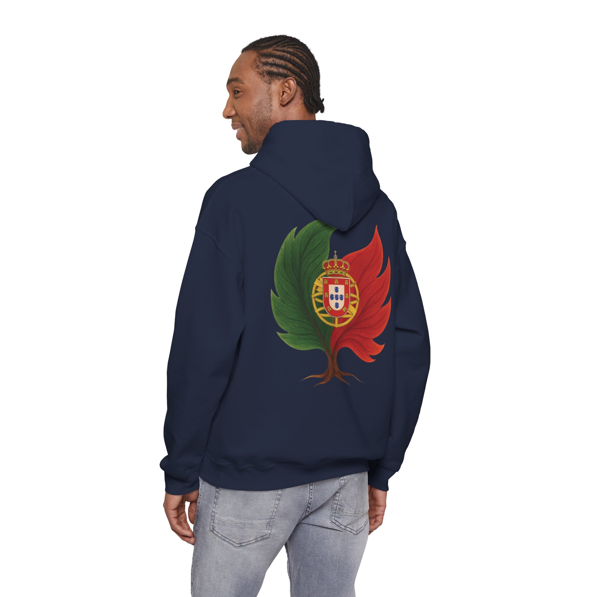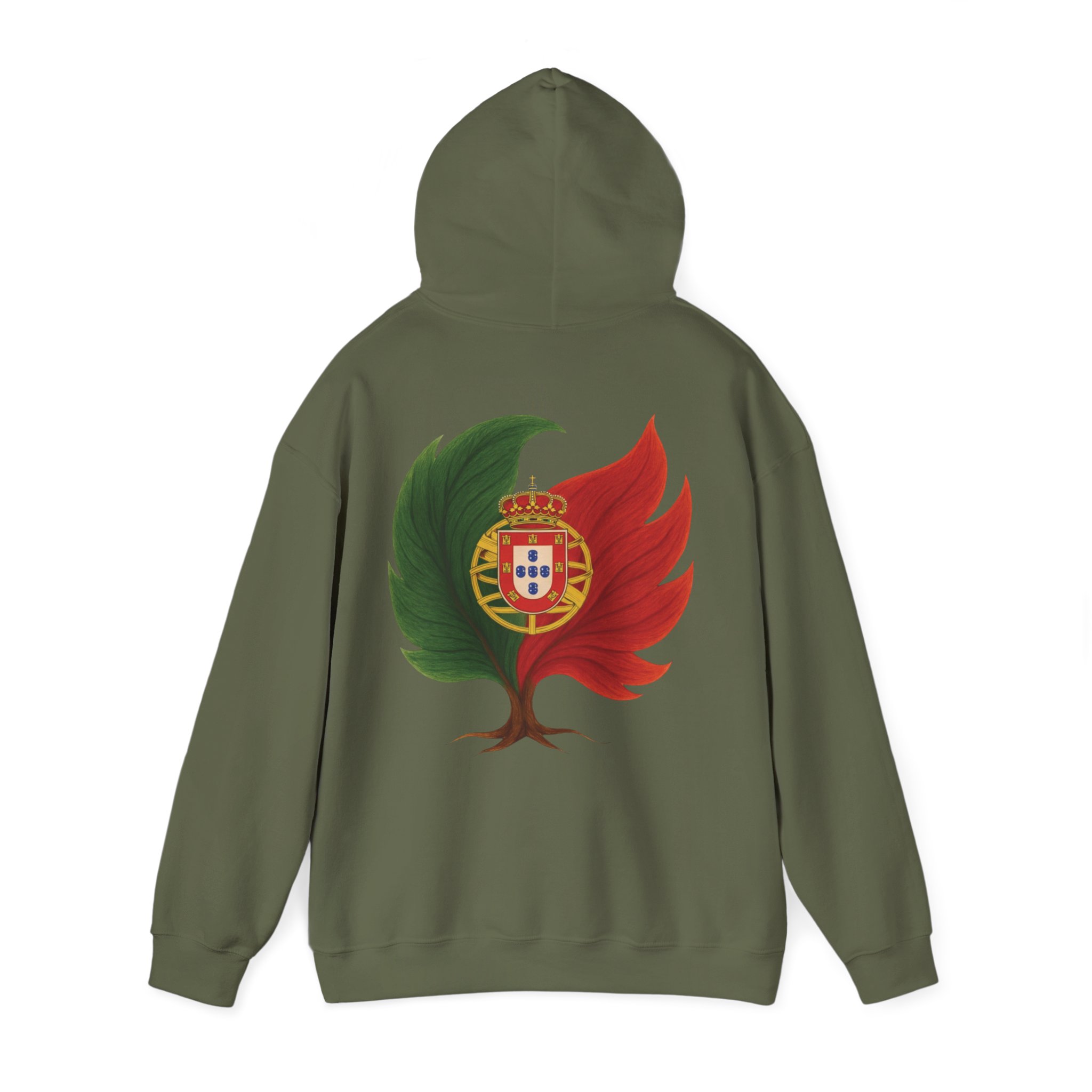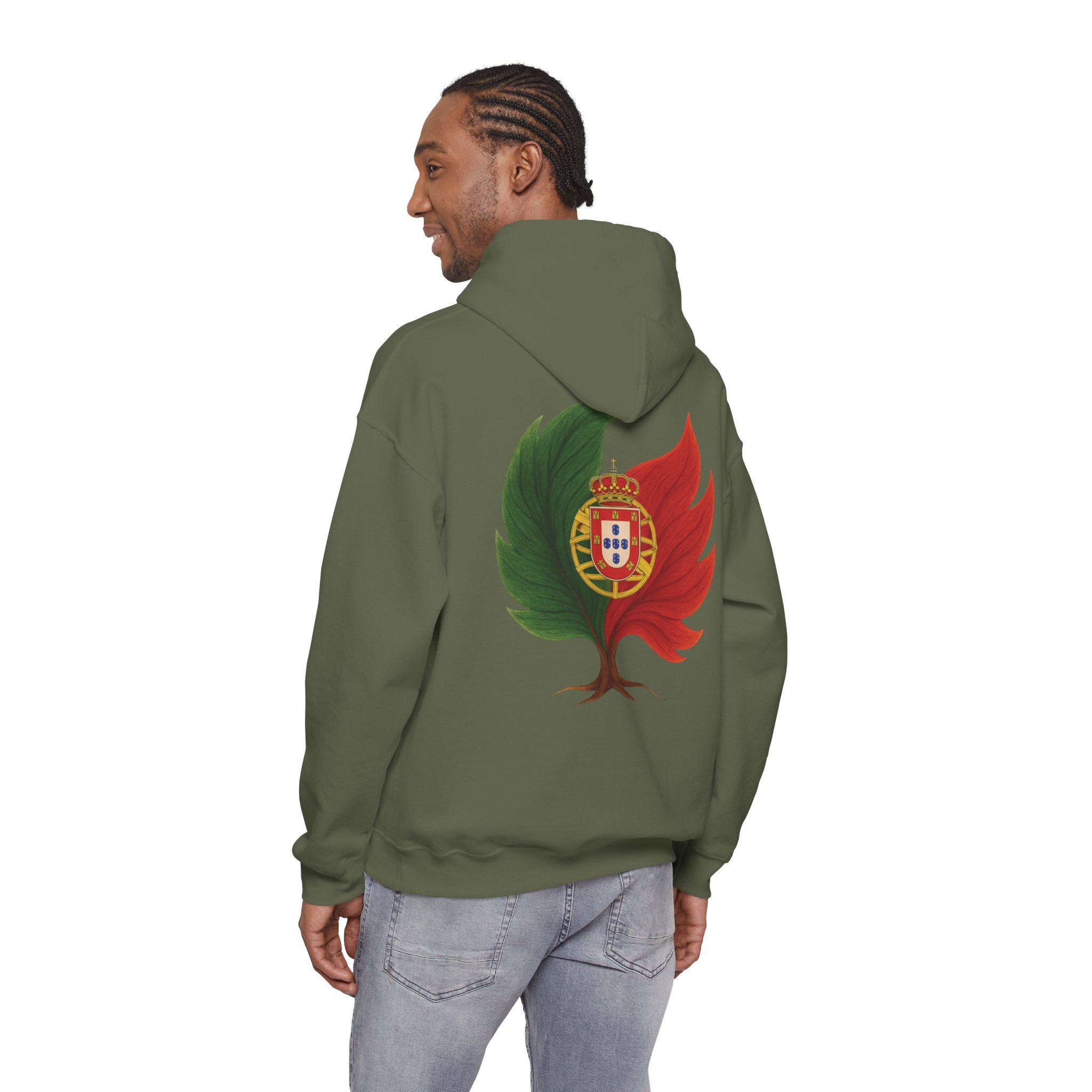Doux, ample et d’une audace discrète, ce sweat-shirt à capuche vous enveloppe de chaleur tout en arborant un emblème inspiré par la nature de vos origines. Le motif mêle un arbre et les couleurs du Portugal, évoquant la résilience, le renouveau et une énergie ancrée. Il procure la sensation d’une promenade matinale rafraîchissante au milieu des cèdres et des braises : calme, sérénité et une confiance tranquille. La poche kangourou et la capuche doublée ajoutent une touche pratique au quotidien. Portez-le pour des week-ends de détente, des soirées autour d’un feu de camp ou simplement pour affirmer votre lien subtil avec la nature et vos racines.